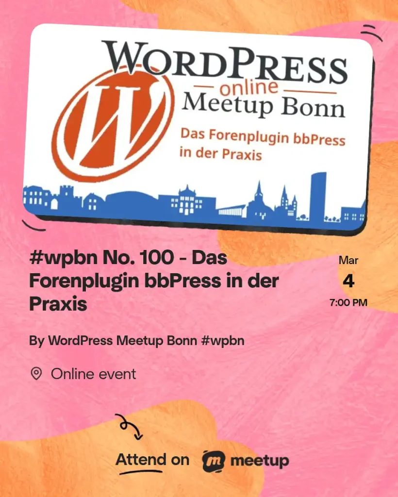 Unsere WordPress-Treffen sind offen für alle Interessierten, egal ob Anwender*innen, Entwickler*innen, Student*innen oder Unternehmer*innen. Natürlich auch für alle, die sich „nur“ privat für WordPress interessieren und z.B. eine Vereinsseite betreuen und bei der Auswahl unserer Themen schauen wir gerne mal über den Tellerrand.